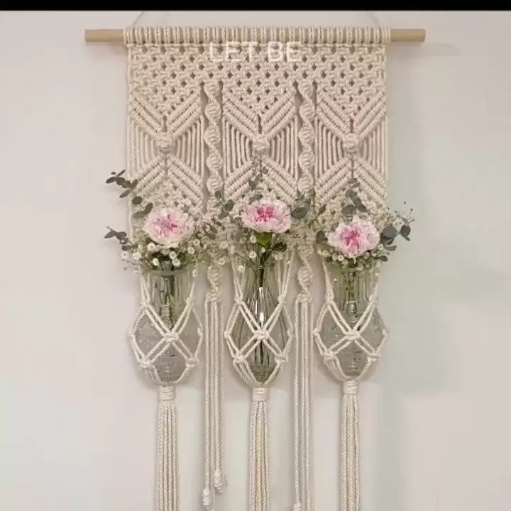 آویز گل مکرومه 3 عددی امکان پرداخت در 2 مرحله و تغییر رنگبندی چوب به صورت رندوم ارسال میشود (پس کرایه)