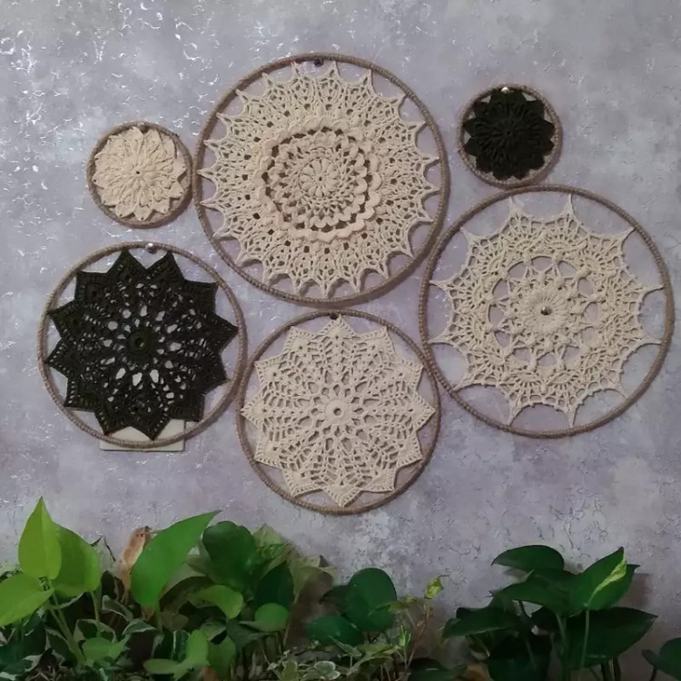 دیوارکوب و اویز قلاب بافی با نخ مرسریزه با کیفیت پرداخت ۲ مرحله یی