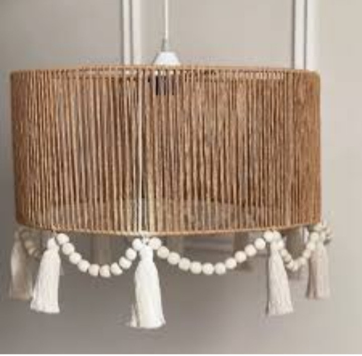 لوستر رافیا بوهو به همراه مهره های چوبی پرداخت ۲ مرحله