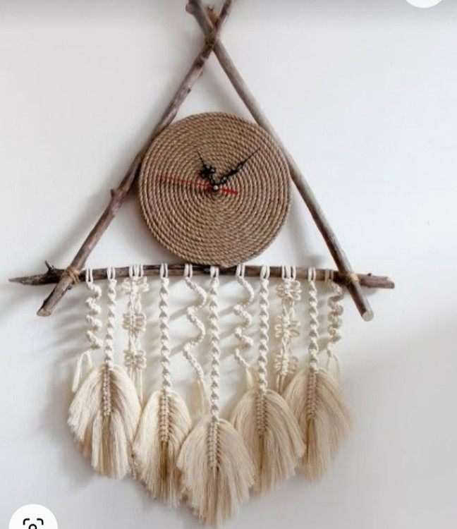ساعت دیواری دفرمه با کنف و چوب طبیعی به همراه برگهای مکرومه پرداخت ۲ مرحله یی