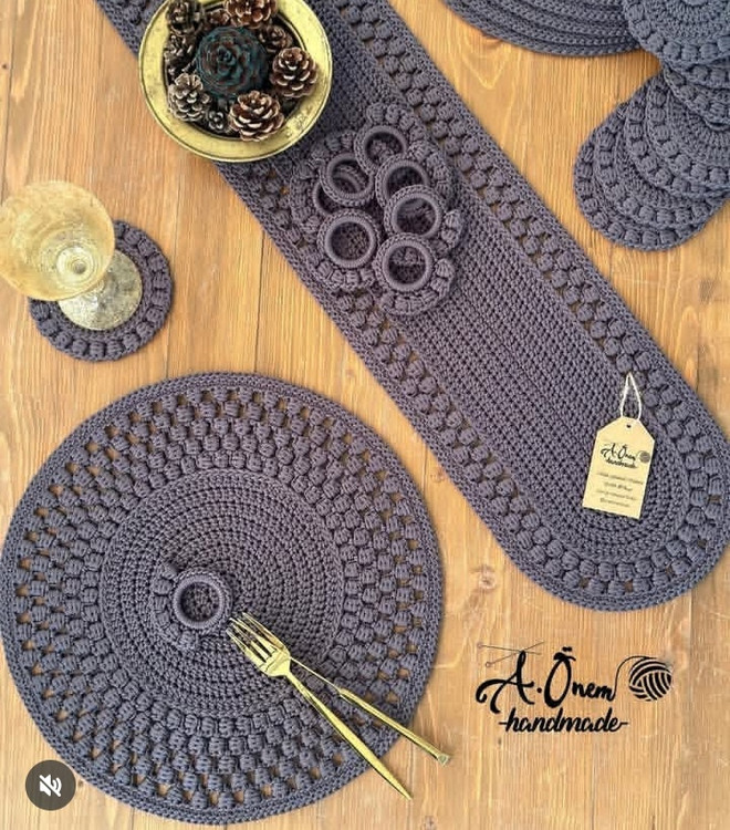 رانر و رومیزی دست بافت قلاب بافی باکیفیت در بافت و رنگ پرداخت ۲ مرحله یی