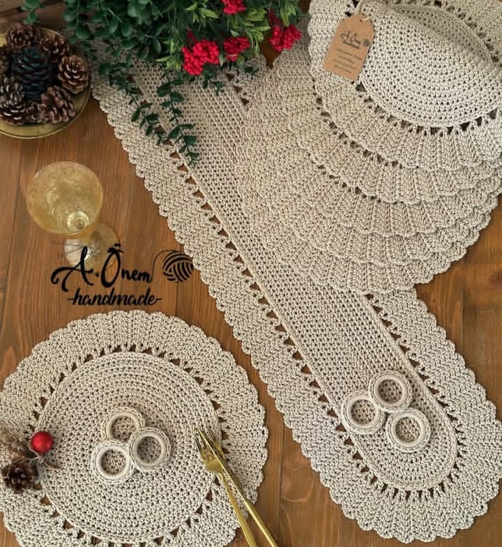 رانر و رومیزی دست بافت قلاب بافی باکیفیت در بافت و رنگ پرداخت ۲ مرحله یی