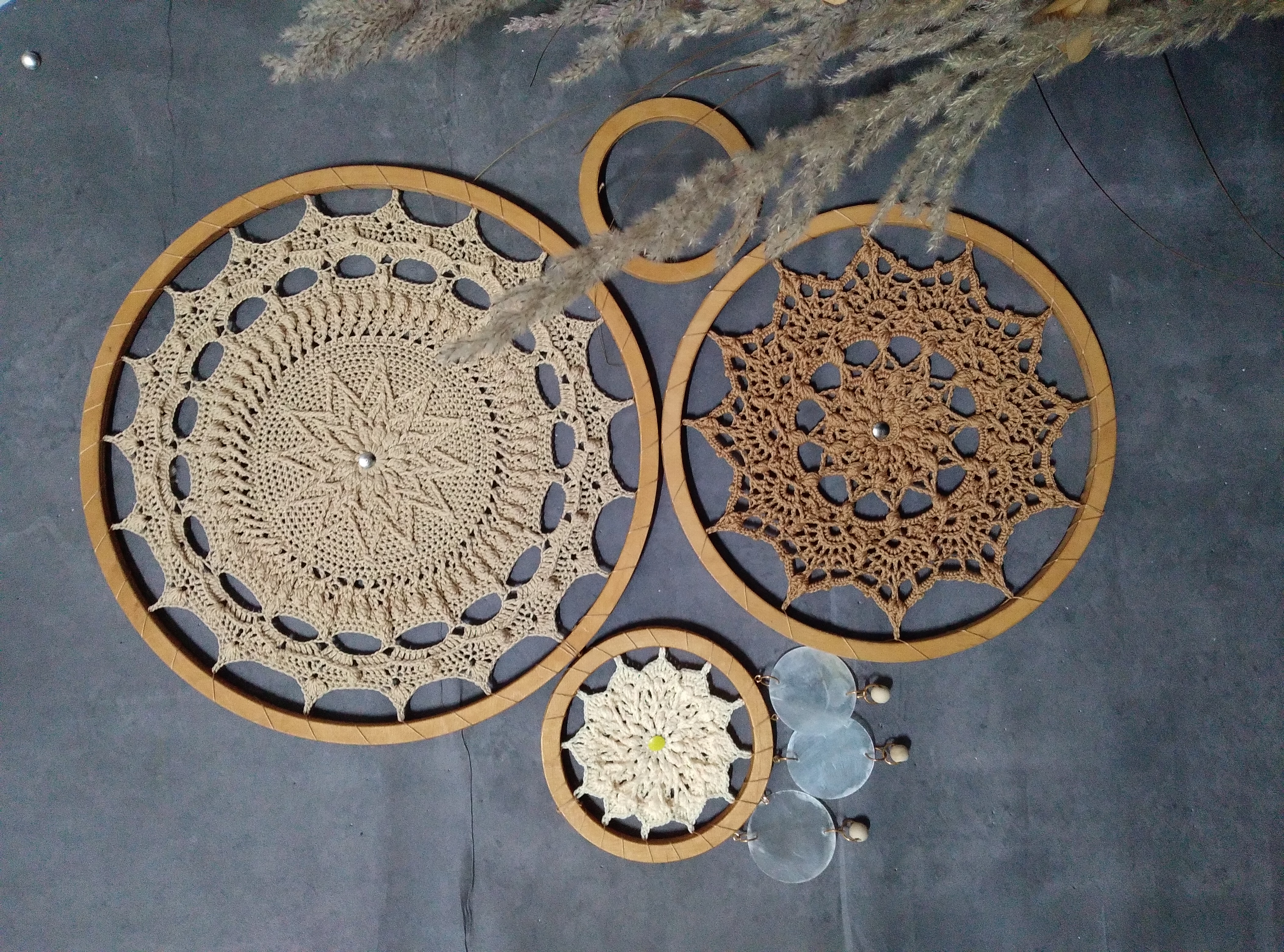 ست ۴ عددی دیوارکوب و آویز ماندالا با صدفهای طبیعی