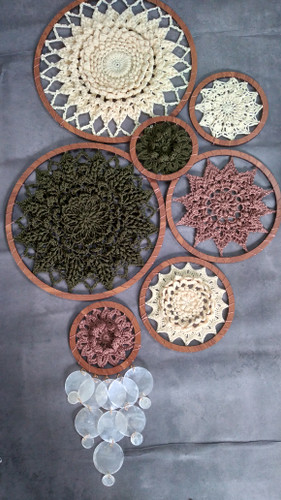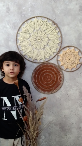 دیوارکوب دست بافت قلاب بافی بافت با نخ مرسریزه و حلقه چوبی روس مجموعه 7 عددی امکان پرداخت بیعانه و در 2 مرحله