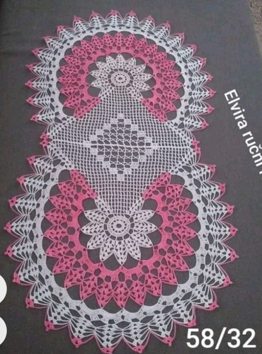 رانر و رومیزی دو رنگ دست بافت قلاب بافی پرداخت ۲ مرحله یی