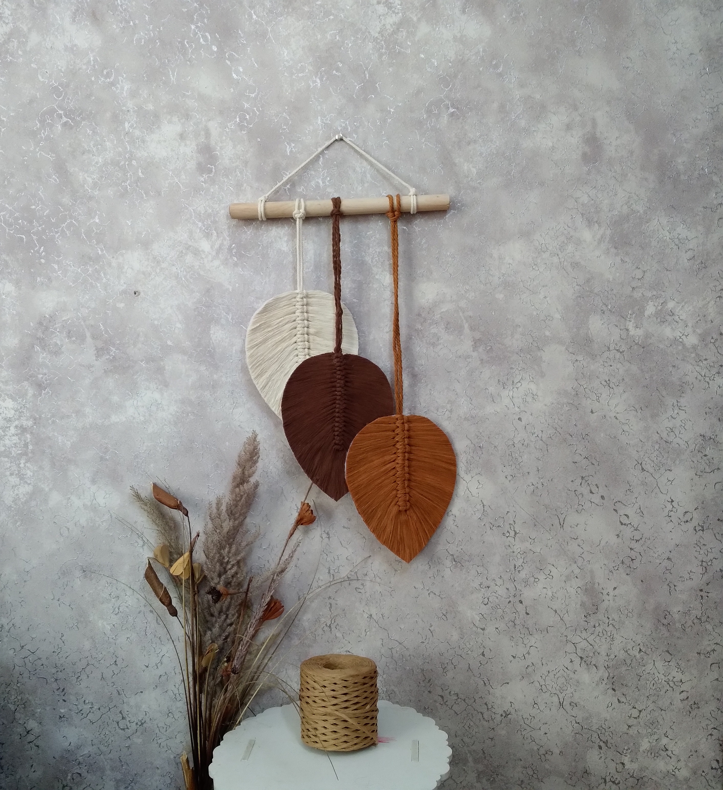 دیوارکوب مکرومه مدل برگ مجموعه 3 عددی