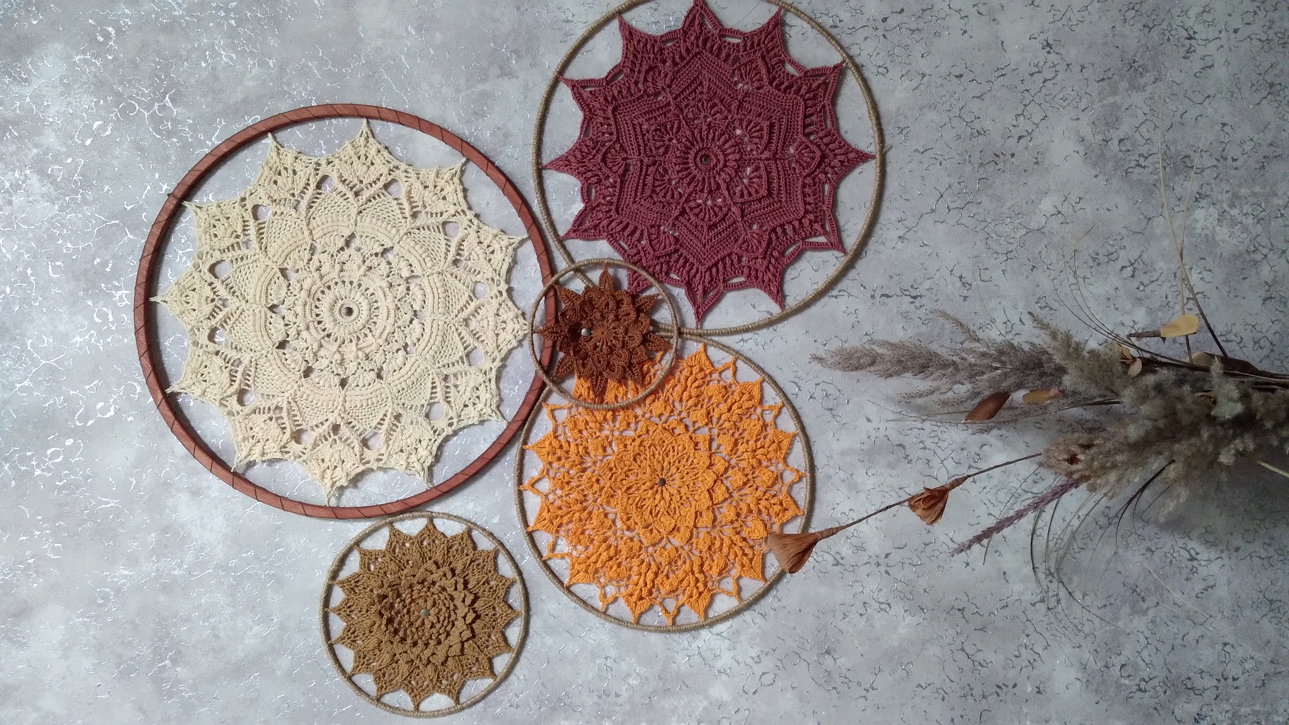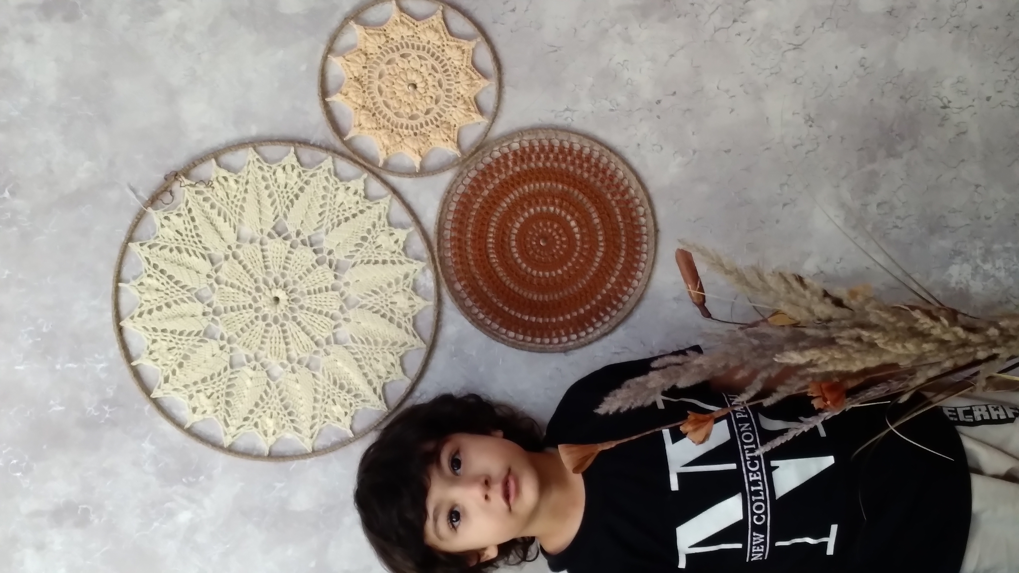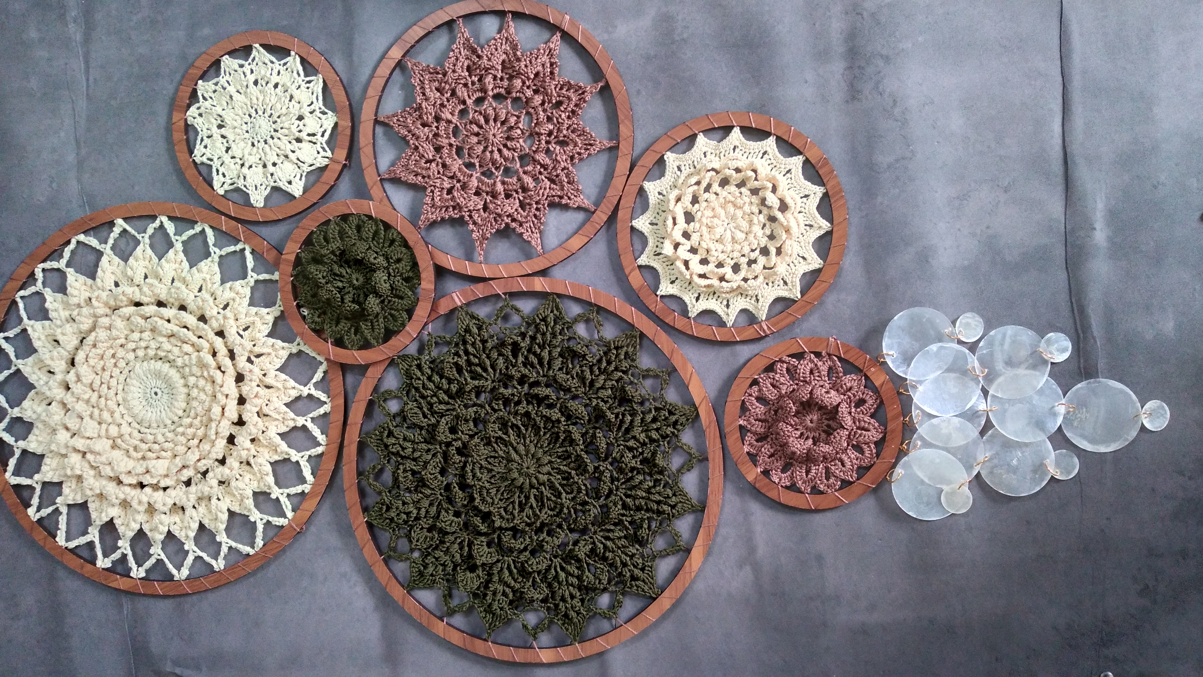 دیوارکوب دست بافت قلاب بافی بافت با نخ مرسریزه و حلقه چوبی روس مجموعه 7 عددی امکان پرداخت بیعانه و در 2 مرحله