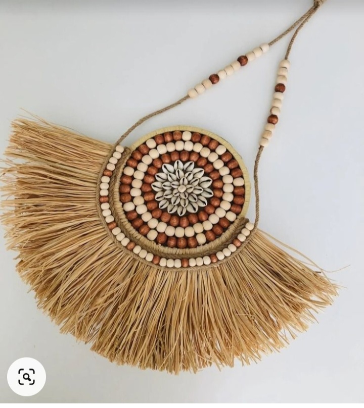 آویز و دیوارکوب بوهو رافیا به مهره چوبی