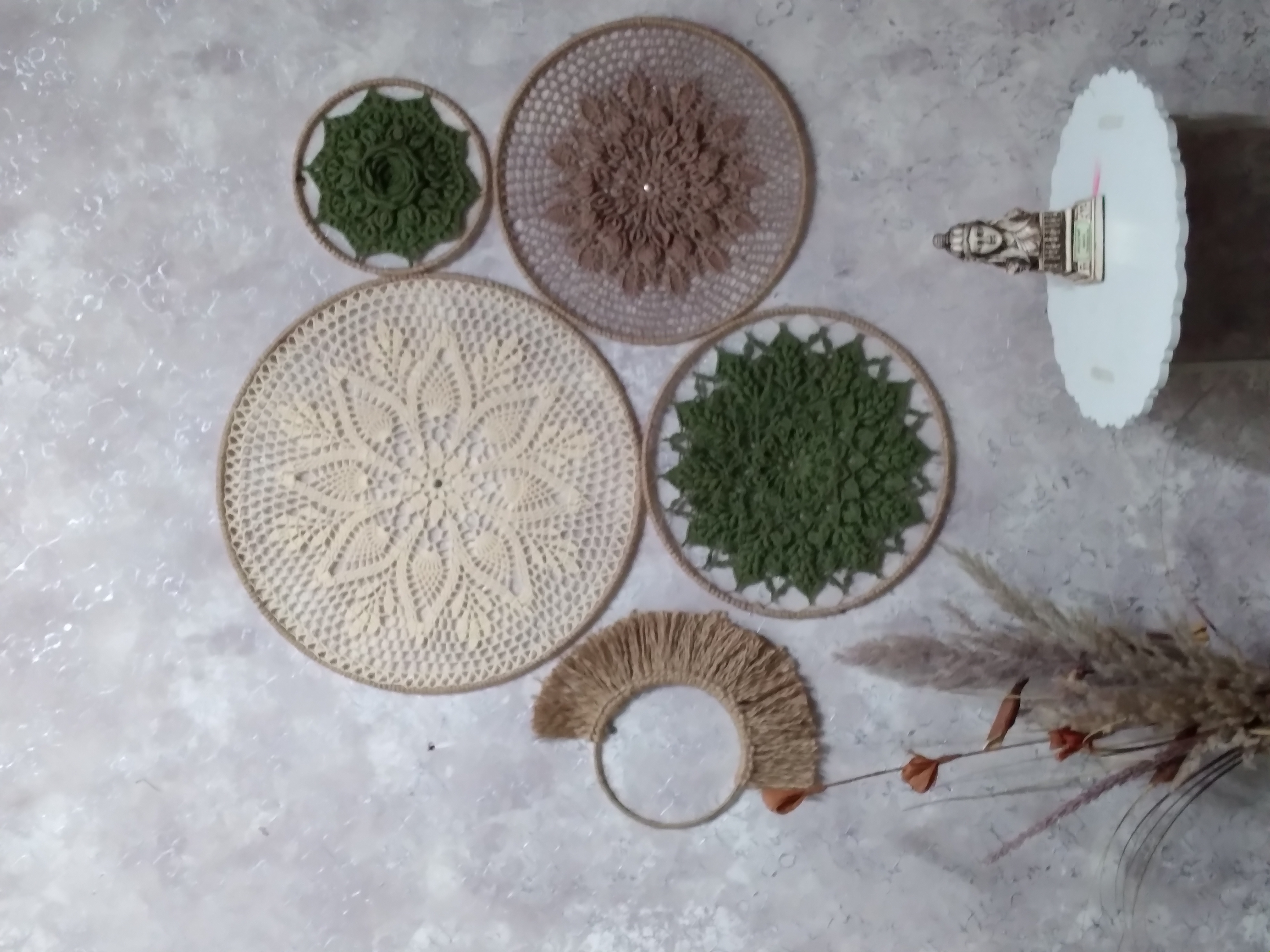 دیوارکوب دست بافت قلاب بافی حلقه ام دی اف و نخ مرسریزه مجموعه 5 عددی پرداخت در 2 مرحله (پس کرایه)