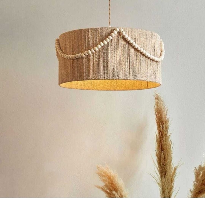 لوستر رافیا بوهو به همراه مهره های چوبی پرداخت ۲ مرحله