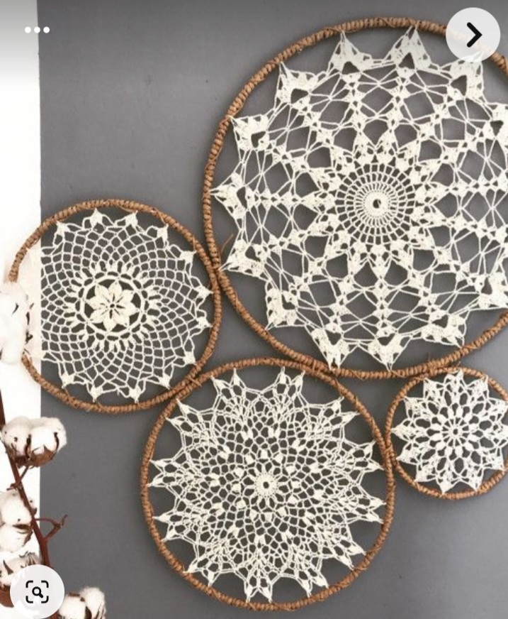 دیوارکوب و آویز دست بافت قلاب بافی ست 4 عددی به همراه برگ مکرومه